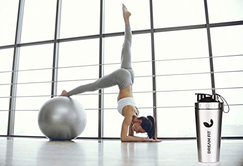 Dream FIt | Shaker per proteine | Shaker Palestra | Borraccia Palestra | Shaker in Acciaio Inox a Prova di Perdita con Finestra Trasparente e capacità Massima 900ml con Bracciale in Silicone - Silver