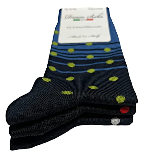 DREAM SOCKS 6 paia calze corte da uomo a metà polpaccio in cotone filo di scozia elasticizzate,calzini molto leggeri made in italy rimagliate a mano (43-46, 4 X Set. POIS/RIGHE)