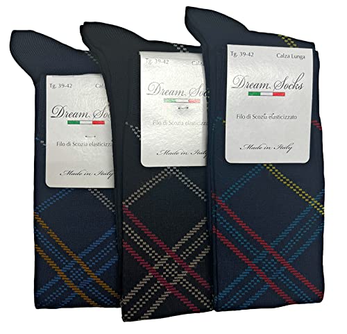 DREAM SOCKS 3 paia calze lunghe da uomo in cotone filo di scozia elasticizzate,calze lunghe molto leggere made in italy rimagliate a mano (39-42, 3 Paia NEW SCOTTISH)