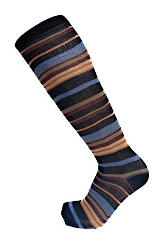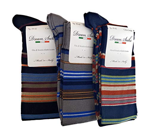 DREAM SOCKS 6 paia calze LUNGHE da uomo in cotone filo di scozia elasticizzate,molto leggere made in italy rimagliate a mano (43-46, 6 X Set. MULTI RIGHE)