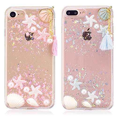 Applicable models: iphone7Plus (5.5-inch),Marine shell tassels, Platinum sequins shellfish starfish,The transparent shell is shiny on platinum