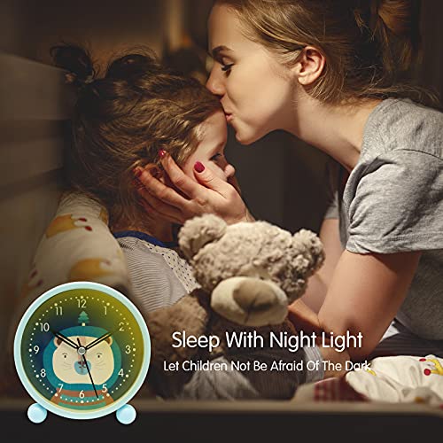Wndy's Dream Sveglia per bambini senza ticchettio, simpatica sveglia a pressione con luce notturna per ragazzi, ragazze e studenti (leone)