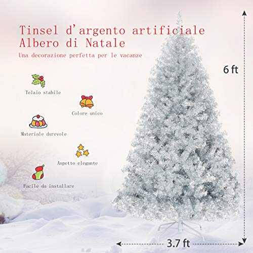 PVC di alta qualità con pellicola argento - Realizzato in PVC ecologico e con pellicola argento inodore, quest'albero di Natale non è dannoso per la salute ed è sicuro da usare. Grazie alla lavorazione delicata, è inodore, non infiammabile, non si deforma facilmente e dura a lungo.