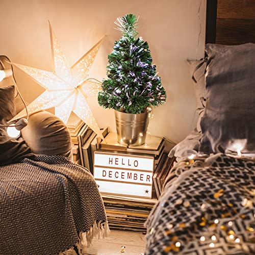 DREAMADE Albero di Natale 60 cm Illuminato con Luci LED, Albero con Fibra Ottica che Cambia Colore e 60 Rami, Albero Artificiale Compatto per Scrivania per Uso Commerciale e Domestico