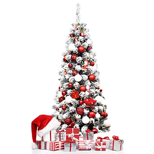 DREAMADE Albero di Natale innevato, Abete Artificiale con Base Pieghevole e Rami rigogliosi, Perfetta Decorazione da Interno ed Esterno per Festival Feste Vacanze Scale e corridoi (180CM)