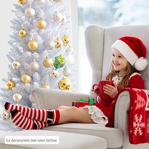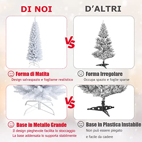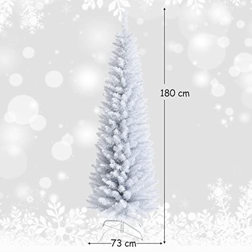 DREAMADE Albero di Natale Sottile 150/180 cm, Albero Artificiale Bianco non Illuminato con Base di Metallo Pieghevole e PVC Durevole, Pino Realistico Decorazione per Casa Festeggiare (180 cm)
