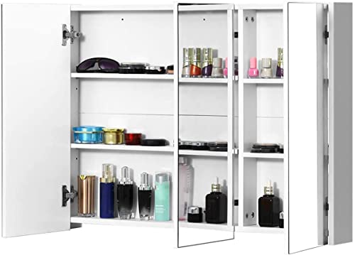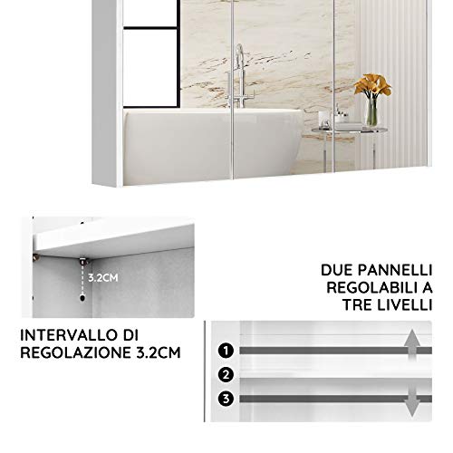 DREAMADE Armadietto a Specchio per Bagno Mobiletto Specchiera con Specchio e 3 Ante per il Bagno a 3 Ripiani, Bianco