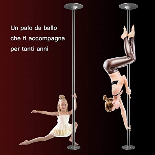 DREAMADE Palo da Ballo Professionale Palo Pole Dance Professionale in Acciaio Inox,Altezza Regolabile(2,23m Fino a 2,74m),Statico e Girevole