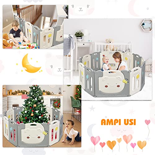 DREAMADE Centro Giochi per Bambini 6-36 Mesi con Sicurezza, Box di Protezione Piccoli con Pannelli di Gioco, Recinto per Bimbi con Forma Regolabile (12 Pannelli)