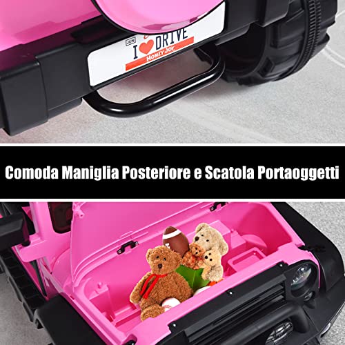 DREAMADE Jeep Elettrica a 2 Posti per Bambini, Macchina Fuoristrada Cavalcabile 12V con Telecomando, Auto Elettrica Velocità Regolabile, Stoccaggio Ampio, Adatta a Varie Strade, 123x80x80 cm (Rosa)