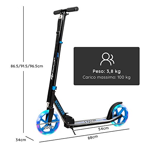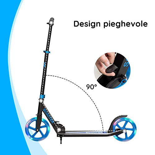 DREAMADE Scooter Monopattino Pieghevole per Bambini, con Ruote Luminose e Resistenti all'Usura, Altezza Regolabile, Regalo Perfetto Come Giocattolo per Bimbi, 10+ Anni (Blu + Nero)