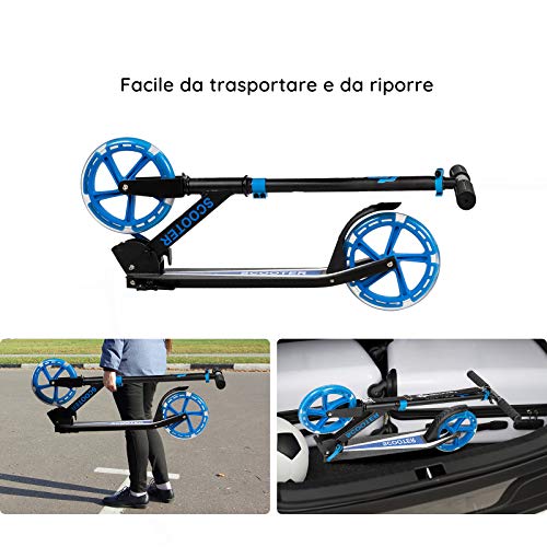 Design Pieghevole - Questo monopattino leggero può essere piegato facilmente e occupa solo un piccolo spazio. Questo design rende il monopattino facile da riporre e puoi metterlo nel bagagliaio dell'auto per far giocare i bambini quando fate un viaggio.