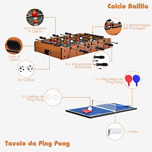 DREAMADE Tavolo Multi Gioco Calcio Balilla 4 in 1 per Bambini e Adulti, Calcio Balilla Multifunzione con Gioco da Calcetto, Gioco da Hockey, Gioco da Ping Pong e Gioco da Biliardo, 81 x 43 x 30,5 cm