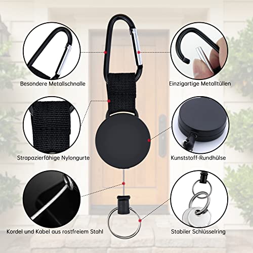 【Materiali di alta qualità】 Questo cordino retrattile è composto da un gancio da arrampicata, un anello portachiavi in metallo e una cassa rotonda in plastica, robusto e durevole, peso ma non pesante, può essere utilizzato per un lungo periodo di tempo