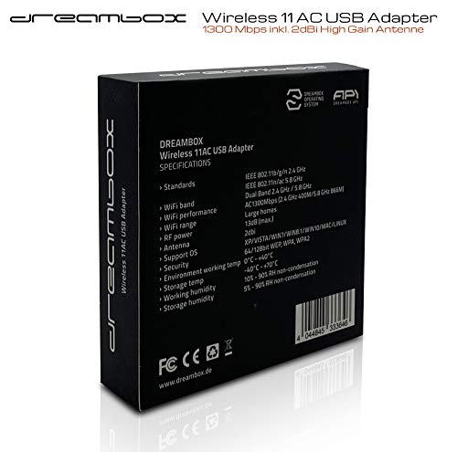 Dreambox - Adattatore wireless USB 2.0 Dual Band 1300 Mbps con antenna