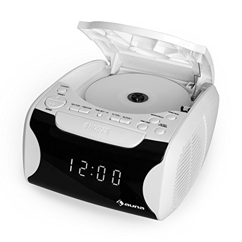 AUNA Dreamee - Radio Orologio, Riproduttore CD Top-Loading, USB, Timer Sleep, Funzione Snooze, Dual Alarm, Tuner FM/MW, Ingresso RCA da 3,5 mm Uscita AUX, CD, CD-R,CD-RW e CD MP3, Bianco