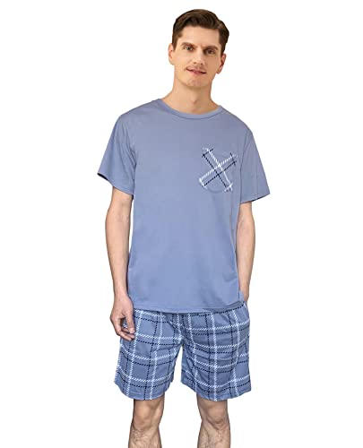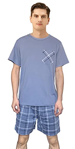 G.N Dreamer Pigiami da Uomo Pigiama Breve Reticolo Pigiama per Uomo Cotone Biancheria da Letto T-Shirt Set Pjs Classici