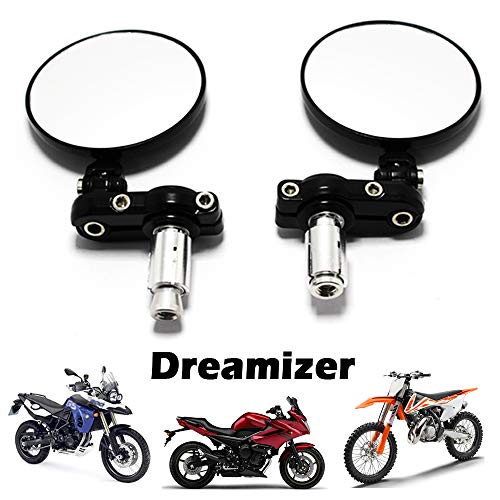 DREAMIZER Moto Rotondi Specchietti Manubrio 7/8" 22mm, Specchietti Retrovisore Moto per Cafe Racer Street Bike Dirt Bikes Cruiser Scooter Bobber Chopper