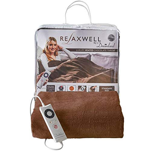 Dreamland 16082 Relaxwell Luxury Heated Throw 150 x 90cm Luxury microfleece throw with soft touch fabric 9 Heat settings 5 Minutes ultra fast heat up time New Intelliheat Technology for perfect temperature control - Chocolate by Dreamland