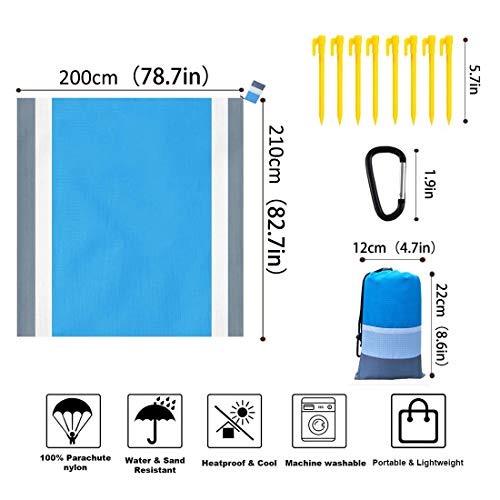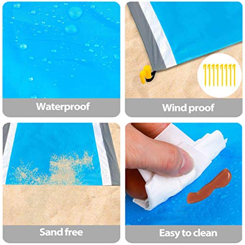 Dreamlark - Coperta da picnic a prova di sabbia, extra large, impermeabile, leggero, con 8 chiodi fissi, per viaggi, campeggio, escursionismo