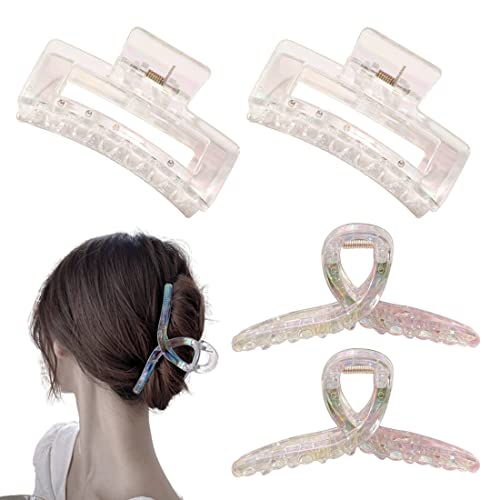 Dreamle Set di 4 fermagli per capelli da donna, artigli per capelli da ragazza per capelli spessi, Capelli di Plastica, Grande per Capelli Spessi e Capelli Lunghi, chiari e lucenti