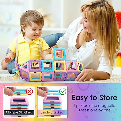 [40 Blocchi da Costruzioni Magnetiche a Colori Macoron] Il kit di costruzioni magnetiche è composto da 40 pezzi e da un libro di idee. I bambini possono creare forme piane in 2D o strutture geometriche in 3D, e i blocchi magnetici possono essere combinati come castelli, animali vari, pentagrammi, aeroplani, palline, ecc.