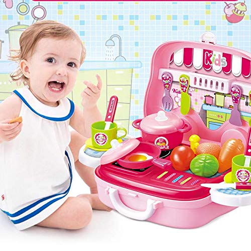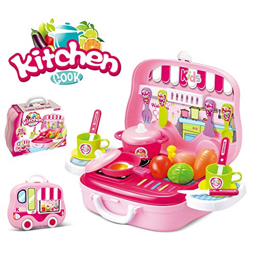 Dreamon Mini Cucina Giocattolo Set Cuoco in Valigetta con Accessori Giochi per Bambini (Rosa)