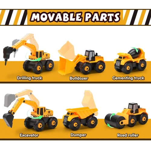 Dreamon Montare Camion Giocattoli, Smontare Escavatore Ruspa Giocattolo con Elettrico-Drill Gioco Educativo Regalo di Natale per Ragazzi Ragazze Age 4 5 6