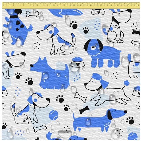 DreamRoots Tessuto impermeabile al metro 160 cm Larghezza - Stoffa al metro impermeabile 220 g/m2 600D - Cuscino esterno impermeabile - Stoffe a metro Blue Dogs 1M