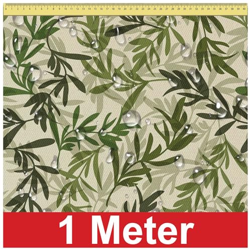 DreamRoots Tessuto impermeabile al metro 160 cm Larghezza - Stoffa al metro impermeabile 220 g/m2 600D - Cuscino esterno impermeabile - Stoffe a metro Vintage Green Leaves 1M
