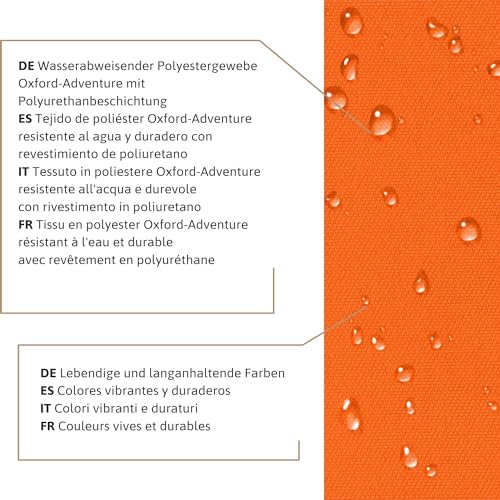 DreamRoots Tessuto impermeabile al metro 160 cm Larghezza - Stoffa al metro impermeabile 220 g/m2 600D - Cuscino esterno impermeabile - Stoffe a metro Arancione 1M