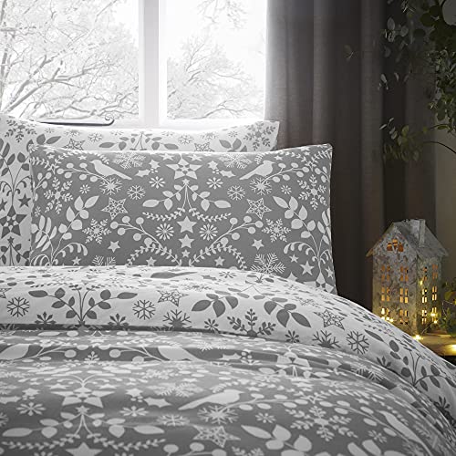 Un paese delle meraviglie scandinavo è uno spettacolo accogliente e un luogo ideale per rilassarsi alla fine di una giornata intensa. Goditi la morbida sensazione di un bellissimo cotone spazzolato al 100% e lascia che la proliferazione di motivi nordici su questo set copripiumino reversibile grigio e bianco ti manda per dormire con stile.