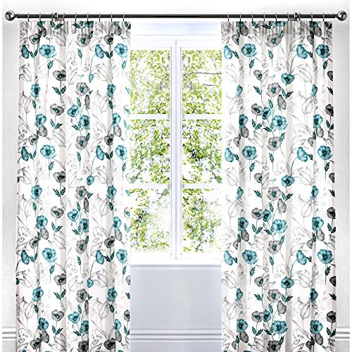 Dreams & Drapes Stampa Floreale Papavero Fliss Tende Foderate pieghettate 167,6 x 182,9 cm, Poliestere, Duck Egg, 183 x 168 x 1 cm