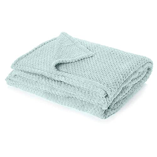 Dreamscene, copriletto singolo lussuoso e caldo con morbido effetto visone, lavorazione a nido d'ape, ideale per divano, dimensioni: 150 cm x 200 cm, colore: azzurro uovo di anatra