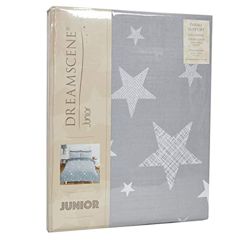 Il set di biancheria da letto Dreamscene presenta una stampa di stelle grigie e bianche reversibile con design a righe moderno