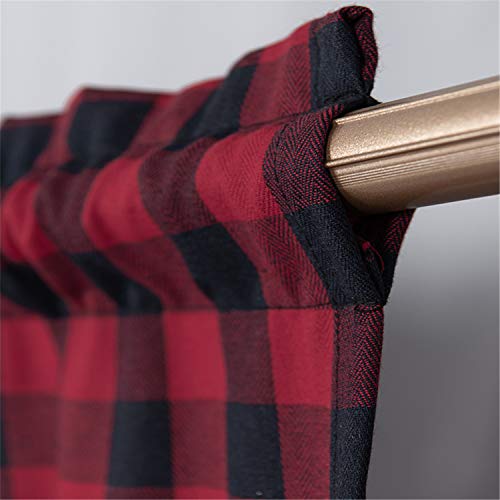 Dreamskull - Tendina corta, stile rustico, per cucina, opaca, tenda da bistrò o salotto, a quadri, set da 2 pezzi, altezza 60 cm (rosso, altezza x larghezza 61 x 74 cm)