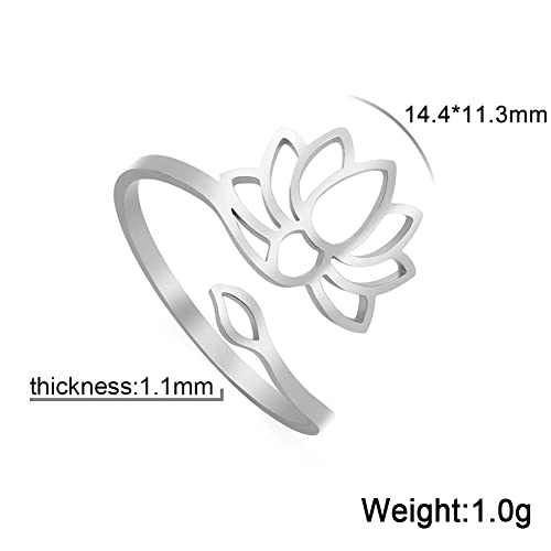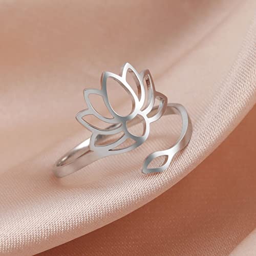 Dreamtimes Anelli di fiori di loto per le donne Incoraggiamento Anello regolabile di fiori di loto Gioielli vintage Buddha Yoga Ring Wedding Mother Bague Gift (d'argento)
