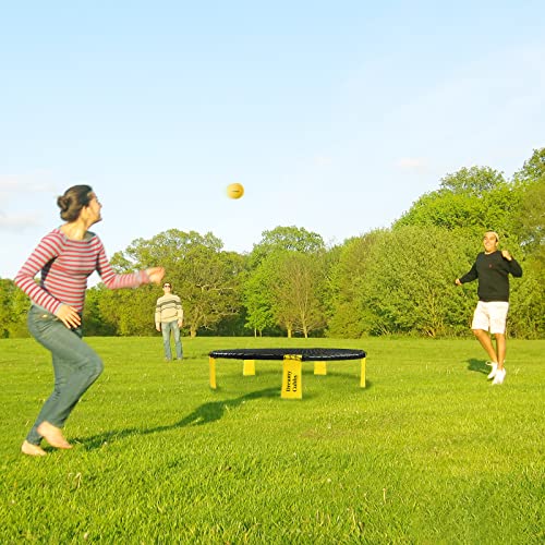 【Super Qualità】Gambe in PP antiscivolo durevoli integrate, robusto telaio in ABS, robusta rete elastica e sfere elastiche. Puoi giocare a questo roundnet quasi ovunque. Che sia in spiaggia, al lago o al parco, funziona benissimo anche sull'asfalto.