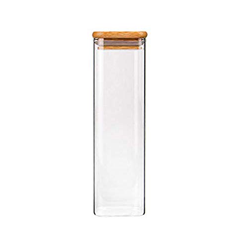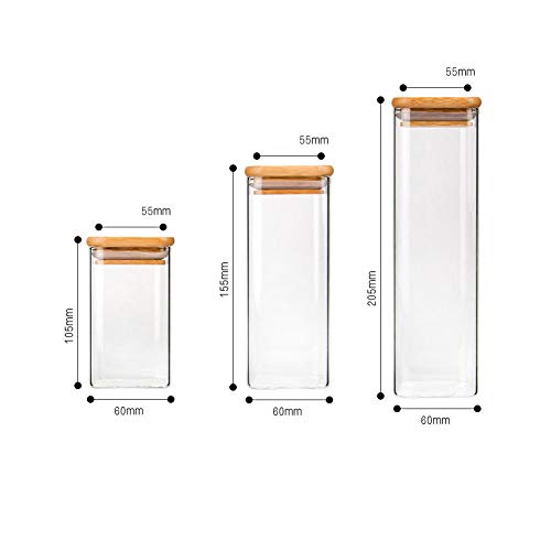 DreamyLife 540ml Barattolo di Vetro Quadrato - Vasetto Vetro Impilabile - Contenitore in Vetro Borosilicato con Coperchio di bambù - Ideale per Spaghetti, Spezie, Cereali