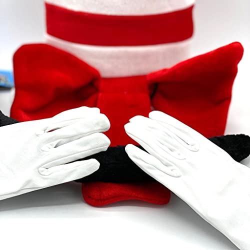 Dreamzfit Kit per gatti a righe rosse e bianche per bambini, 4 pezzi, set di accessori per travestimento da cappello + papillon + guanti per bambini + coda della settimana del libro mondiale del