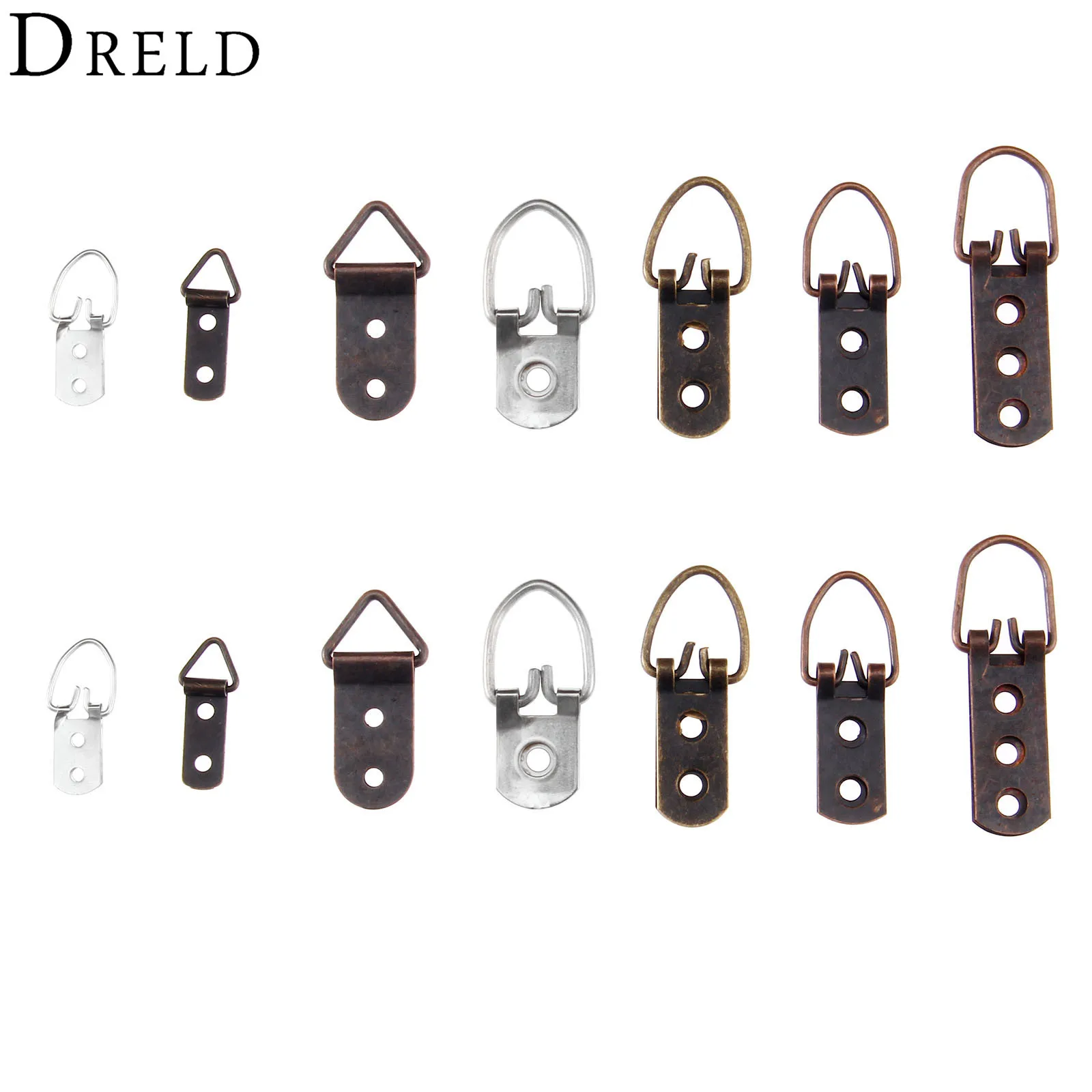 DRELD 5/20Pcs Zinc Alloy D-Ring Hanging Picture Photo Oil Painting Mirror Frame Hooks Hanger with Screws Bronze/Silver Tone