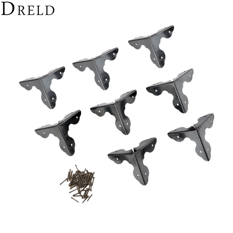 DRELD 8pcs 33mm Wood Box Corner Protectors Alloy Black Book Scrapbooking Notebook Albums Menus Folders Corner Protectors Bracket