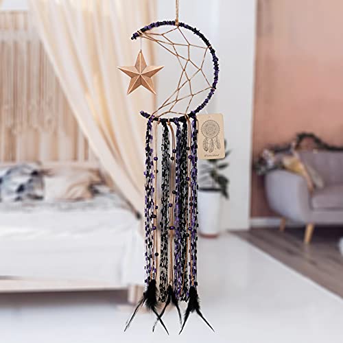 Dremisland Acchiappasogni a forma di luna a mezzo cerchio con piume acchiappasogni da appendere alla parete, decorazione per la casa, decorazione natalizia, regalo artigianale (viola)