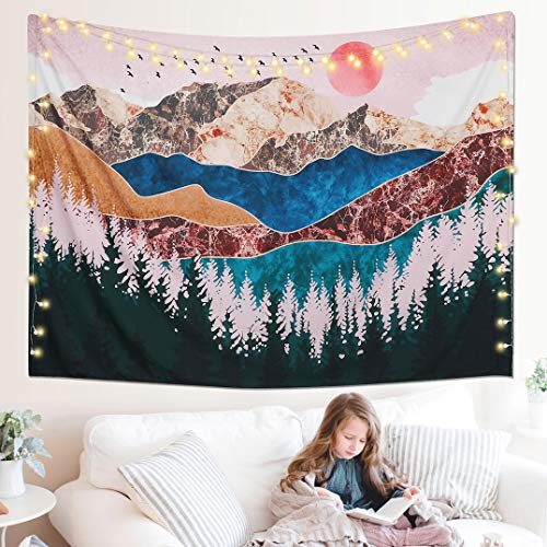 Dremisland Arazzo da Parete Sole Arazzi Foresta Albero Appendere a Parete Montagna Psichedelico Paesaggio Naturale Tapestry Decorazione Parete per Camera da Letto (Colorato, L/148X200cm)