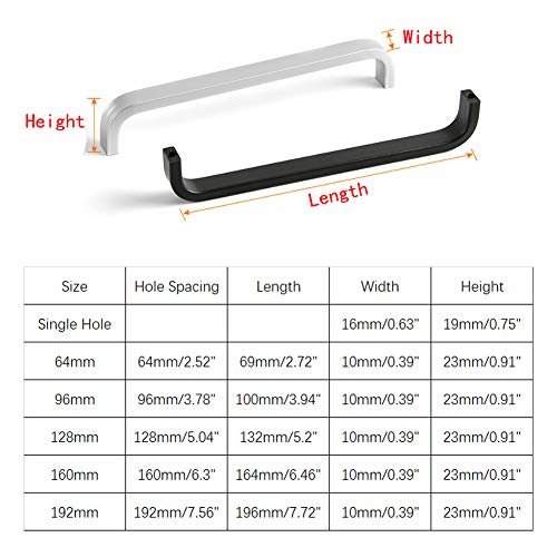 Materiale: questa maniglia è realizzata in materiale solido in lega di alluminio. Queste finiture rendono la maniglia perfetta per case con interni moderni o contemporanei, non solo per la cucina, puoi utilizzare queste maniglie anche per aggiornare i tuoi mobili da bagno, cassettiere, ecc.