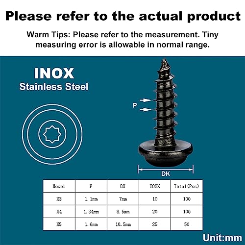 Drenky Viti Autofilettanti per Legno M4x16mm,50 Pezzi Viti Acciaio Inox A2 V2A Nero Viti Autoperforanti Torx con Rondella Elevata Durezza,Filettatura Completa Metrica