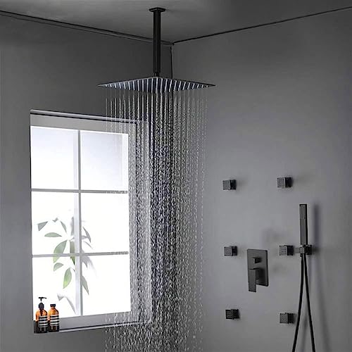 Drenky Braccio Doccia a Parete,Braccio Doccia Nero 20 cm Braccio Soffione Doccia in Acciaio Inox A2 V2A Prolunga Soffione Doccia Quadrato Braccio per Soffione Doccia Fisso,Finitura Laccata Nero Opaco