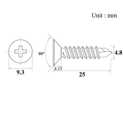 Drenky 100 Pezzi Viti Autofilettanti Per Metallo,M4.8x25 Vite Per Lamiere Testa Piatta Antiruggine Acciaio Inox Multiuso Universale A Filetto Pieno Viti Incrociate