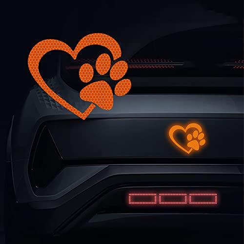 Dreothy 2 adesivi riflettenti serie animali, sicurezza segnali di avvertimento per cani zampa vinile a forma di cuore e adesivi per auto camion