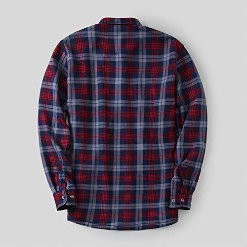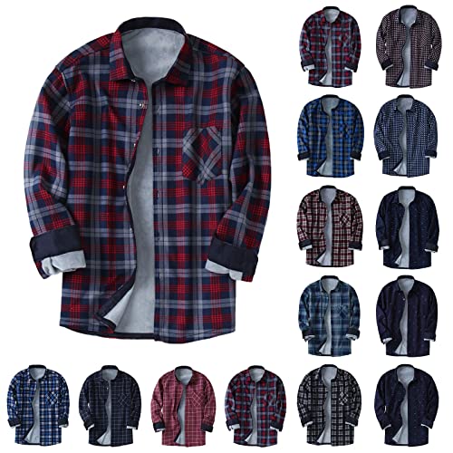 DRESCOKLJ Camicia da uomo a maniche lunghe, invernale, per il tempo libero, calda, giacca invernale a quadri, cappotto interno in legno, camicia da lavoro, Colore: rosso, L